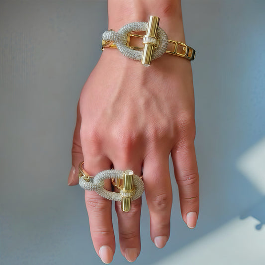 Rope Bond Duo – Gold & Silver Textured Bracelet Ring Set for Bold Connection