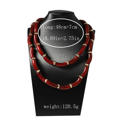 Crimson Heart Dual-Strand Necklace – Red Resin Beads with Gold Accents & Adjustable Clasp