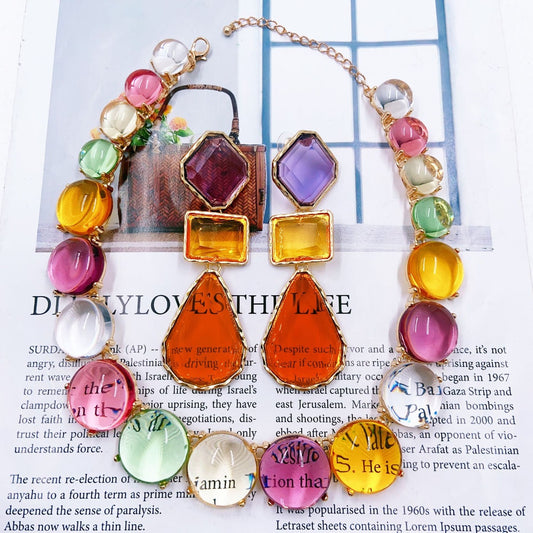 Rasya Dazzle Necklace Set – Multicolor Gemstone Statement with Matching Earrings