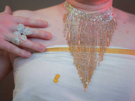 Tarra Tassel Necklace – Cascading Crystal Statement in Gold Finish
